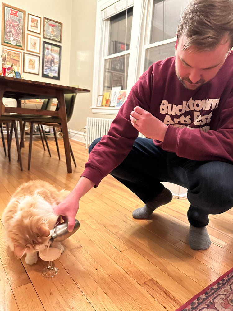 Happy hour isn't just for people, pals. If we've learned anything from our three-legged cat Mr. Biscuits, it's that kitty cats love a good cocktail! AND, it's a great way to keep them hydrated. 🤗 So next time you stir up a round of drinks for yourself, shake one up for your floofy friend, won't ya?